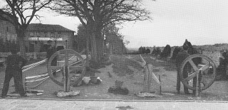 Por último queremos referirnos al edificio bajo de enfrente, se trata de la caseta de los Cordeleros, en la que a buen seguro se habrán encaramado unos cuantos niños. Los cordeleros realizaban sogas y cordeles trabajando la rueda y el cáñamo, y compusieron una estampa típica de Pamplona. Allí estuvieron hasta 1968 cuando se jubiló el último de ellos: Juan Ángel Elizari.