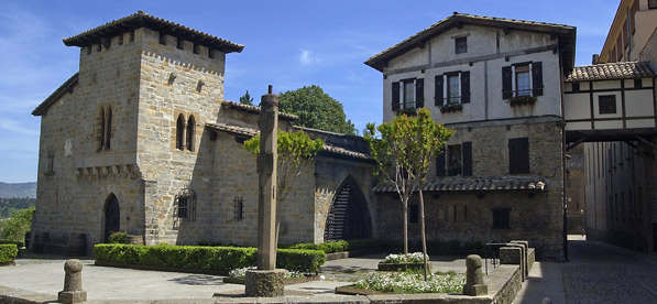 Mucho cuidado con evocar tiempos pasados que el edificio no es antiguo sino construido en 1960 en estilo historicista conforme al proyecto de José Yárnoz. El efecto está logrado y en realidad su ventana ojival y su bóveda de cañón son medievales, ya que se trajeron del palacio medieval de Aguerre, que ubicó la conocida taberna del “Chacolí de Culancho” (o culo ancho), derribada en 1958 para construir el hotel Maisonnave.