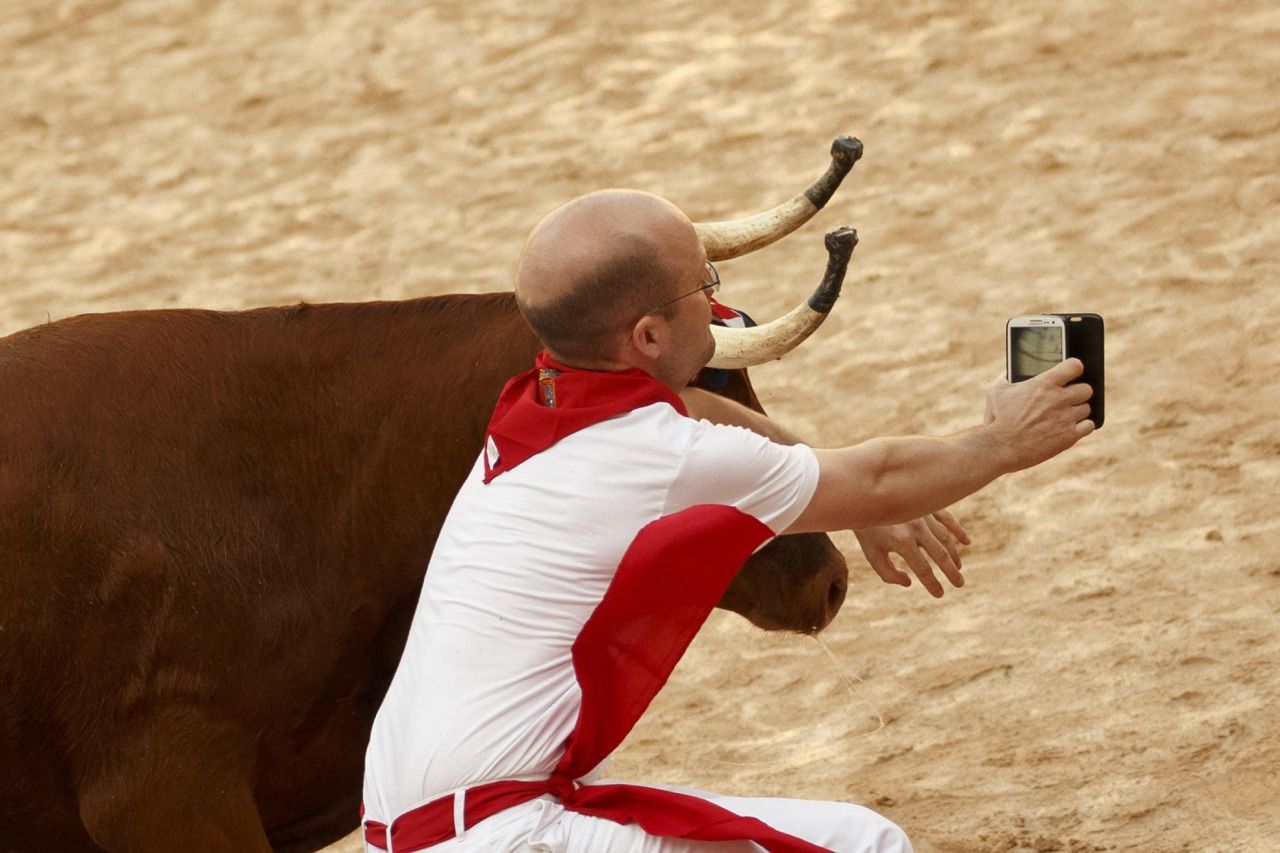 Entre mil quinientas y tres mil personas corren cada día el encierro. Un 18% son de Navarra y un 45% extranjeros. Uno de cada seis no ha dormido la noche anterior (en este apartado los franceses son los más inconscientes, pues el 33% corre de gaupasa). Y el 46% del total es la primera vez que corre (y seguramente la última), vamos que no tienen ni idea de qué va esto y luego pasa lo que pasa.